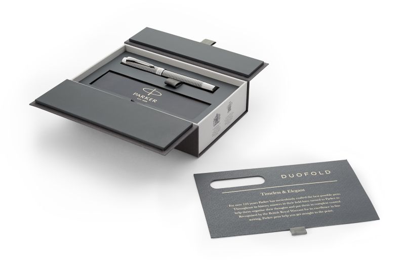 Ручка роллер Parker Duofold Prestige Ruthenium Chiselled CT от официального дилера Parker в Долгопрудном. Вы можете дополнительно заказать гравировку, которая подчеркнет Вашу оригинальность и придаст памятность статусному подарку. Все ручки Паркер поставляются в фирменном футляре.