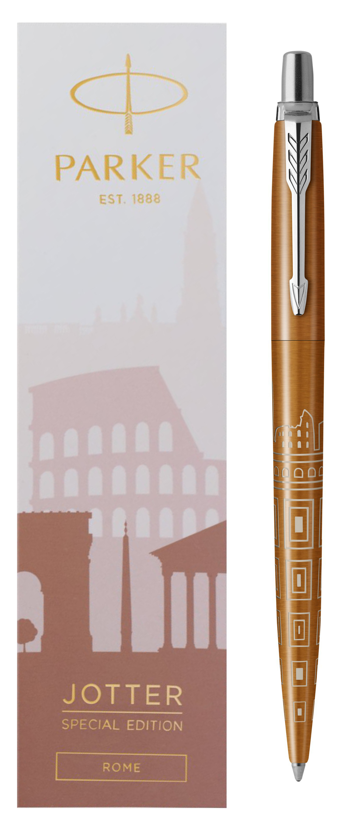 Ручка шариковая Parker Jotter Rome Bronze CT от официального дилера Parker в Долгопрудном. Вы можете дополнительно заказать гравировку, которая подчеркнет Вашу оригинальность и придаст памятность статусному подарку. Все ручки Паркер поставляются в фирменном футляре.